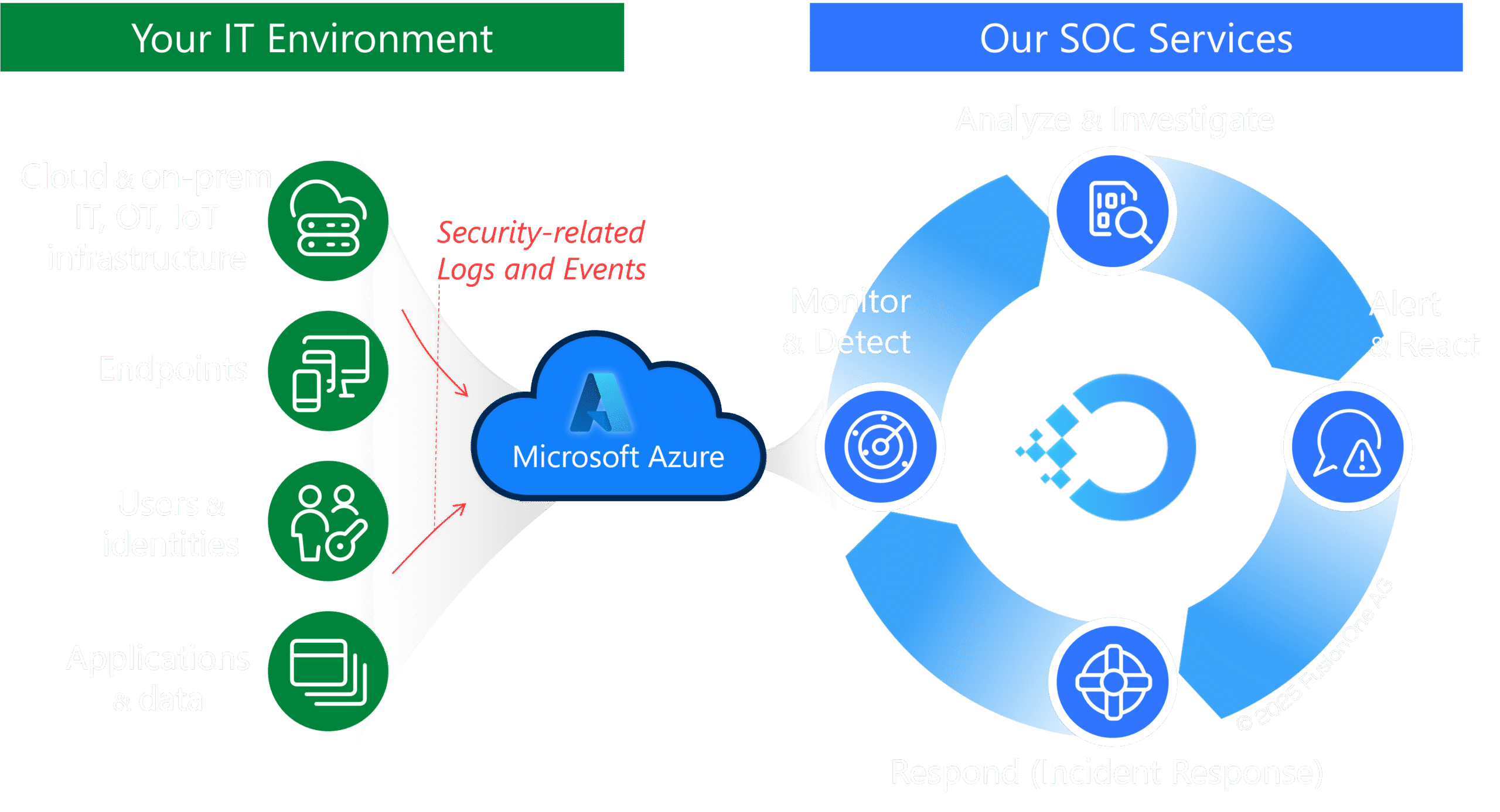 Our SOCaaS integrates seamlessly with Microsoft Defender XDR and other endpoint protection platforms. When using Defender XDR, we benefit from a direct, bidirectional connection with Microsoft Sentinel—enabling real-time data sharing, automated response, and unified threat visibility across endpoints, identities, and cloud services. This tight integration ensures faster detection and more effective response to advanced threats.